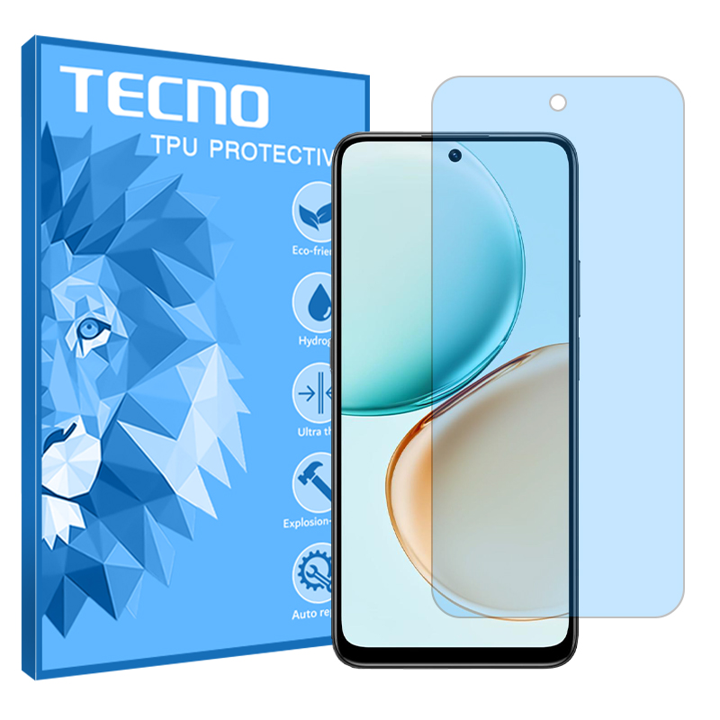 نگران نباشین. کار این محافظ اینه که نور مضر آبی که از دستگاه ساطع می‌شه رو فیلتر کنه. دقیقا مثل یه سپر دفاعی عمل می‌کنه. به این محافظ‌ها آنتی‌بلو، بلولایت، بلو‌کات و ضد اشعه آبی هم می‌گن که همش درسته و یکیه. به این گلس‌ها می‌گن هیدروژلی (غیر شیشه‌ای، خودترمیم، بسیار نازک، مقاوم و منعطف). بالاتر گفتیم که ژلاتین تزریق شده در بافت این محافظ وجود داره. این محصول تولید برند شناخته شده تکنو هستش و انصافا تو این مورد حرفه‌ای عمل کرده. قابلیت جذاب دیگه این محافظ جذب کمتر لکه و چربی انگشت‌هاست. سطح مات این محافظ باعث میشه که زیر نور لامپ یا خورشید انعکاس و حالت آینه‌ای نداشته باشی و دید بهتری داری. یاداور بشیم که به دلیل مات بودن این محافظ، بعد از نصب، روی بعضی از گوشی‌ها ممکنه انگشت و شناسایی نکنه و باز شدن قفل با انگشت به اختلال بر بخوره.