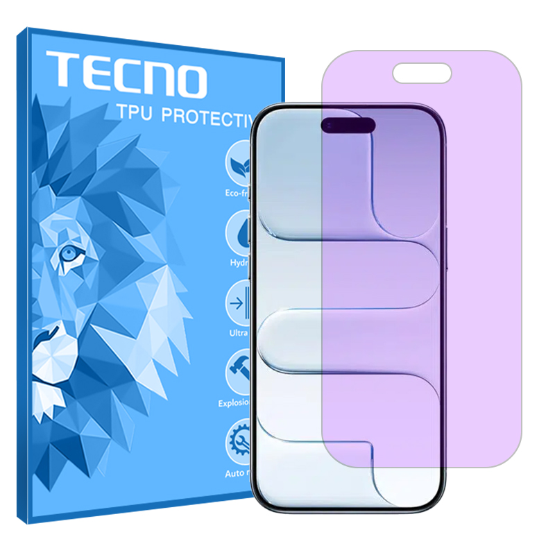 نگران نباشین. کار این محافظ اینه که نور مضر بنفش یا همون یو وی و کمی هم نور آبی که از دستگاه ساطع می‌شه رو فیلتر کنه. دقیقا مثل یه سپر دفاعی عمل می‌کنه. به این محافظ‌ها آنتی پرپل، پرپل لایت، پرپل‌کات و ضد اشعه بنفش هم می‌گن که همش درسته و یکیه. به این گلس‌ها می‌گن هیدروژلی (غیر شیشه‌ای، خودترمیم، بسیار نازک، مقاوم و منعطف). بالاتر گفتیم که ژلاتین تزریق شده در بافت این محافظ وجود داره. این محصول تولید برند شناخته شده تکنو هستش و انصافا تو این مورد حرفه‌ای عمل کرده.