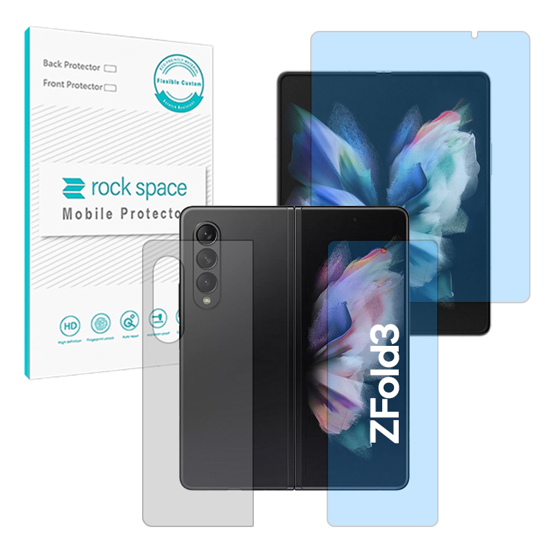 گلس سامسونگ Galaxy Z Fold3 مدل نانو هیدروژل آنتی بلو به همراه محافظ پشت برند راک اسپیس کد LSS