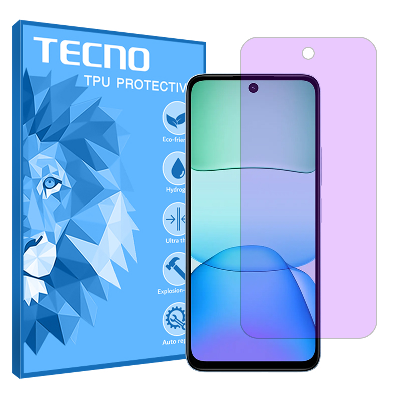 نگران نباشین. کار این محافظ اینه که نور مضر بنفش یا همون یو وی و کمی هم نور آبی که از دستگاه ساطع می‌شه رو فیلتر کنه. دقیقا مثل یه سپر دفاعی عمل می‌کنه. به این محافظ‌ها آنتی پرپل، پرپل لایت، پرپل‌کات و ضد اشعه بنفش هم می‌گن که همش درسته و یکیه. به این گلس‌ها می‌گن هیدروژلی (غیر شیشه‌ای، خودترمیم، بسیار نازک، مقاوم و منعطف). بالاتر گفتیم که ژلاتین تزریق شده در بافت این محافظ وجود داره. این محصول تولید برند شناخته شده تکنو هستش و انصافا تو این مورد حرفه‌ای عمل کرده.