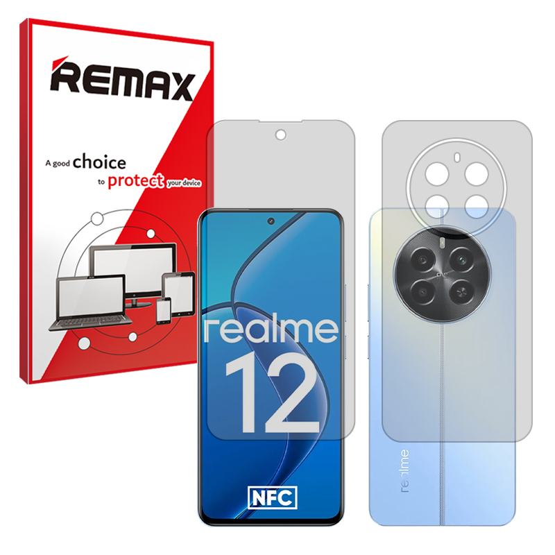 گلس صفحه نمایش و پشت گوشی ریلمی Realme 12 4G مدل هیدروژلی شفاف برند ریمکس کد SS