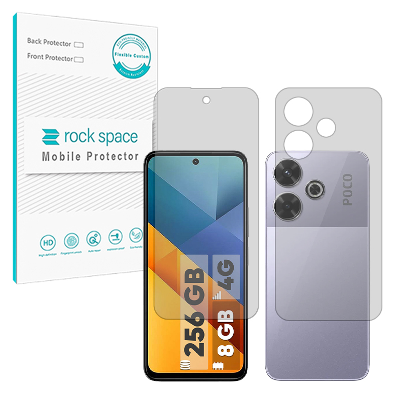 گلس صفحه نمایش و پشت گوشی شیائومی Poco M6 4G مدل نانو هیدروژل شفاف برند راک اسپیس کد SS