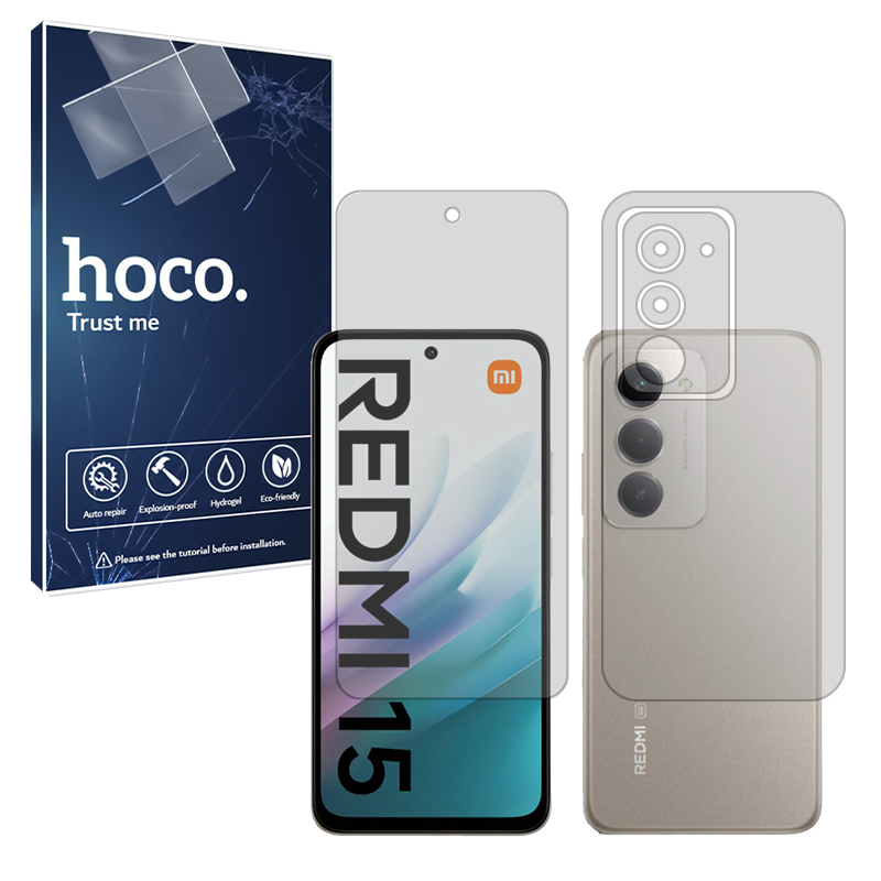 گلس صفحه نمایش و پشت گوشی شیائومی Redmi 15 4G مدل شفاف برند هوکو کد SS