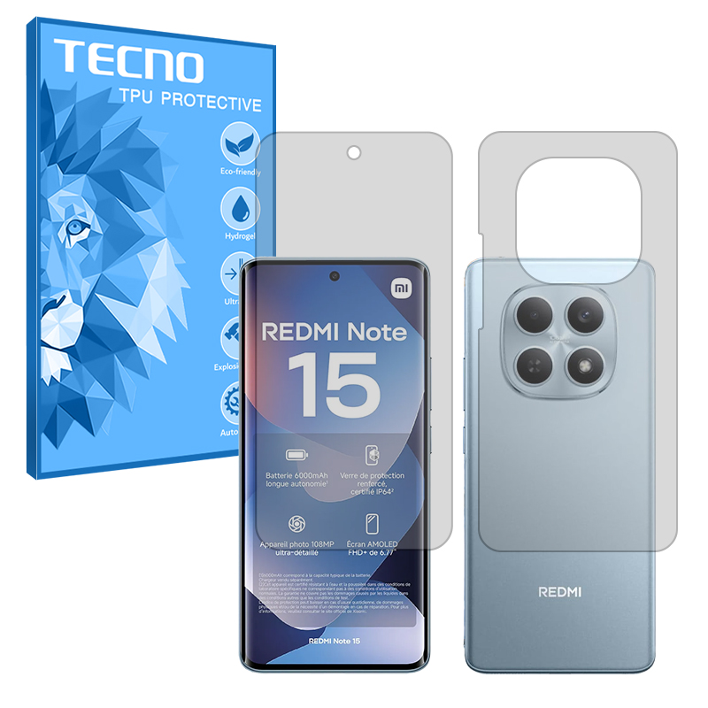 گلس صفحه نمایش و پشت گوشی شیائومی Redmi Note 15 4G مدل هیدروژلی شفاف برند تکنو