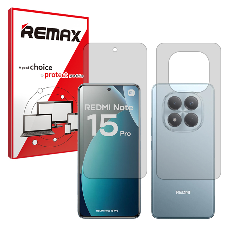 گلس صفحه نمایش و پشت گوشی شیائومی Redmi Note 15 Pro 4G مدل هیدروژلی شفاف برند ریمکس کد SS