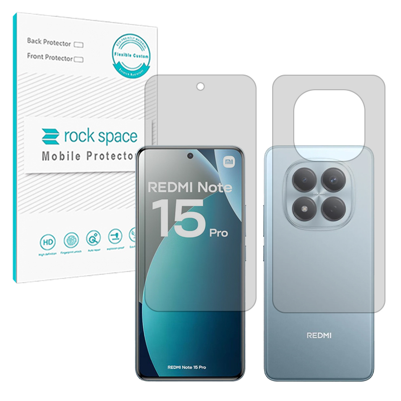 گلس صفحه نمایش و پشت گوشی شیائومی Redmi Note 15 Pro 5G مدل نانو هیدروژل مات برند راک اسپیس